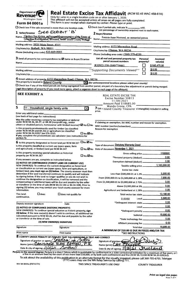 | Tax Area: | 710 - APPRAISER-S Whid Schl Dist, outside Langley, improved & 1 acre or less | Land Use Code | 11 |