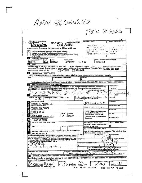| Mailing Address: | DORTE V CALLAHAN 1748 COVEY RUN COUPEVILLE, WA 98239 | % Ownership: | 100.0000000000% |