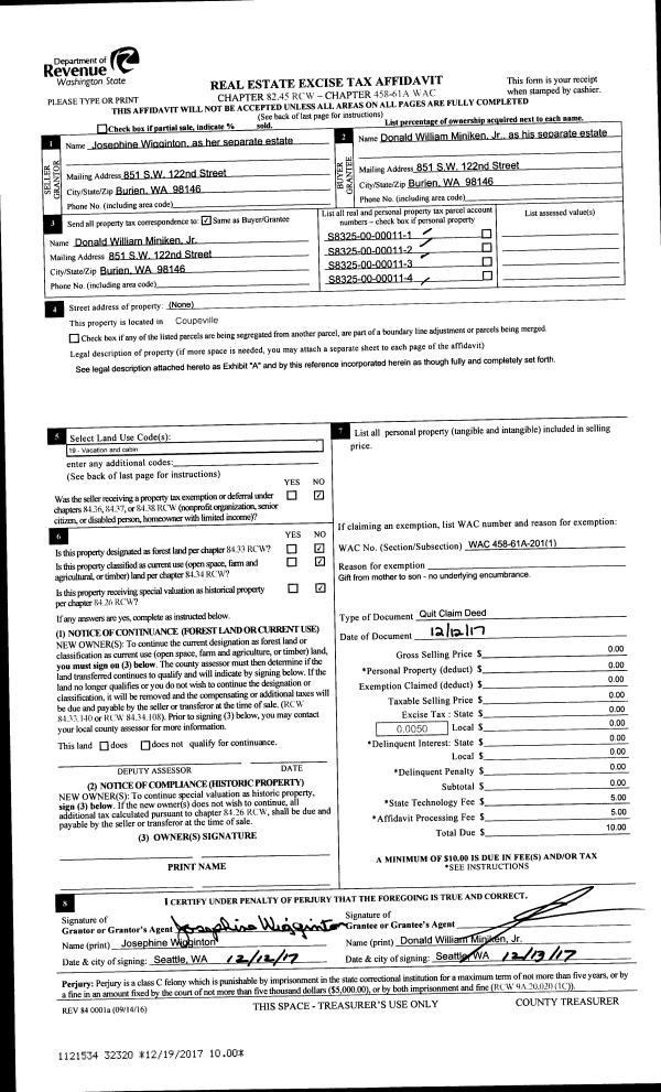 | Mailing Address: | STEPHEN J COOK 1140 SE KALAMA LOOP OAK HARBOR, WA 98277 | % Ownership: | 100.0000000000% |