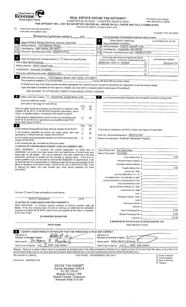 | Mailing Address: | PO BOX 23 FREELAND, WA 98249-0023 | % Ownership: | 100.0000000000% |