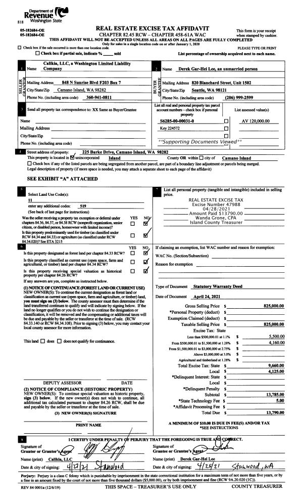 | Mailing Address: | YEE LEUNG 690 NW ATALANTA WAY C102 OAK HARBOR, WA 98277 | % Ownership: | 100.0000000000% |