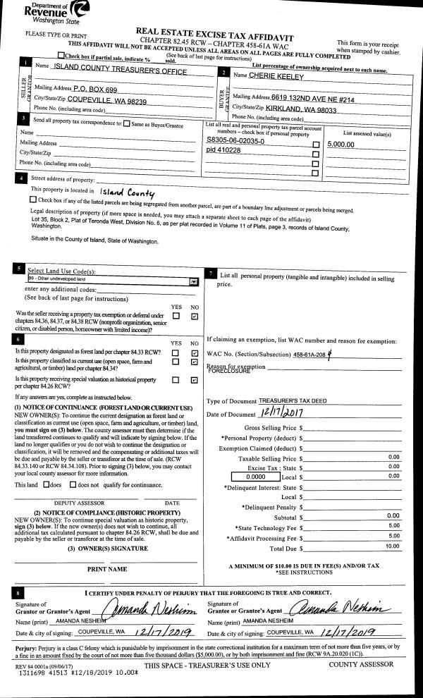 | 1 | 09/15/2009 | QCD | Quit Claim Deed | STATE, OF W | PORT DISTRICT OF SOUTH WHIDBEY | | | $0.00 | 92393 | 4261585 |
