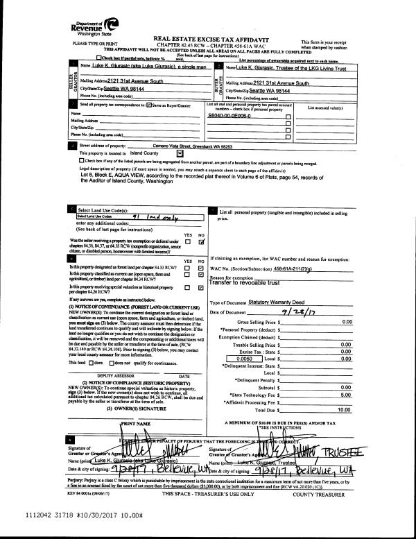 | Mailing Address: | 566 CREEKSIDE TERR #202 LANGLEY, WA 98260 | % Ownership: | 100.0000000000% |