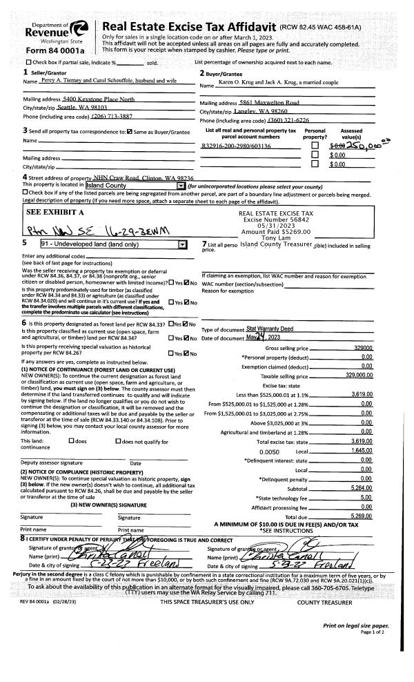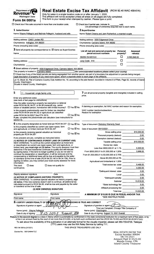 | Mailing Address: | CHERYL LYNN GREHAN 2210 CORSAIR LN OAK HARBOR, WA 98277 | % Ownership: | 100.0000000000% |