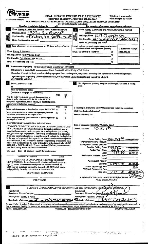 | 4 | 05/07/2007 | WD | Warranty Deed | MULESKINNERS INC , A WASH CORP | SCHREIBER, SETH | | | $125,000.00 | 71564 | 4201786 |