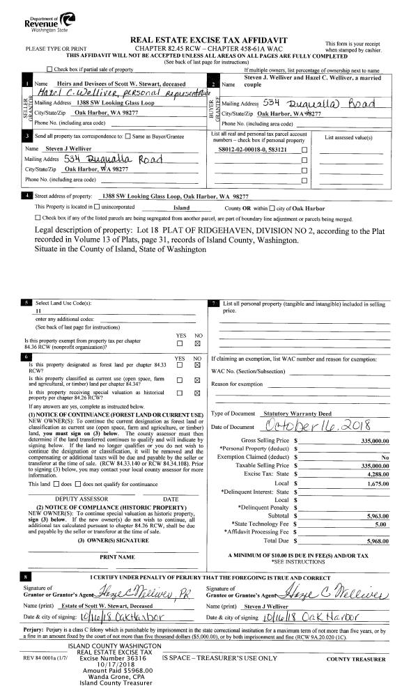 | 5 | 11/21/2002 | WD | Warranty Deed | PECK, GEORGE B | MULESKINNERS INC , A WASH CORP | | | $47,816.00 | 24744 | 4038683 |