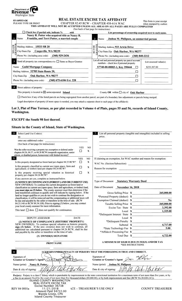 | 5 | 05/19/2003 | WD | Warranty Deed | PALMER, J D | MARSHALL, DAVID R | | | $55,110.00 | 32234 | 4060561 |