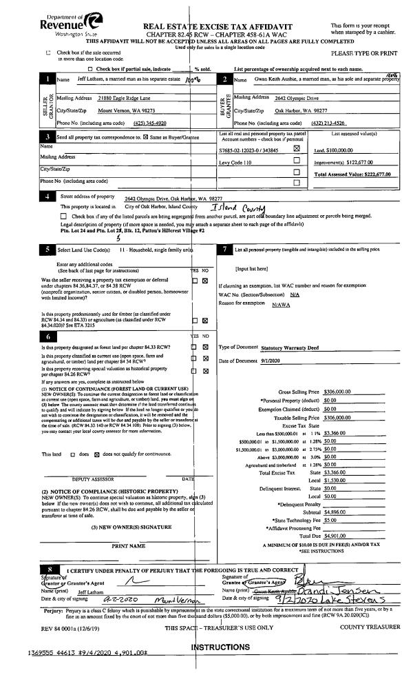| Mailing Address: | MARTHA POPPY SINCLAIR TRUSTEE 945 LEAF LN GREENBANK, WA 98253 | % Ownership: | 100.0000000000% |