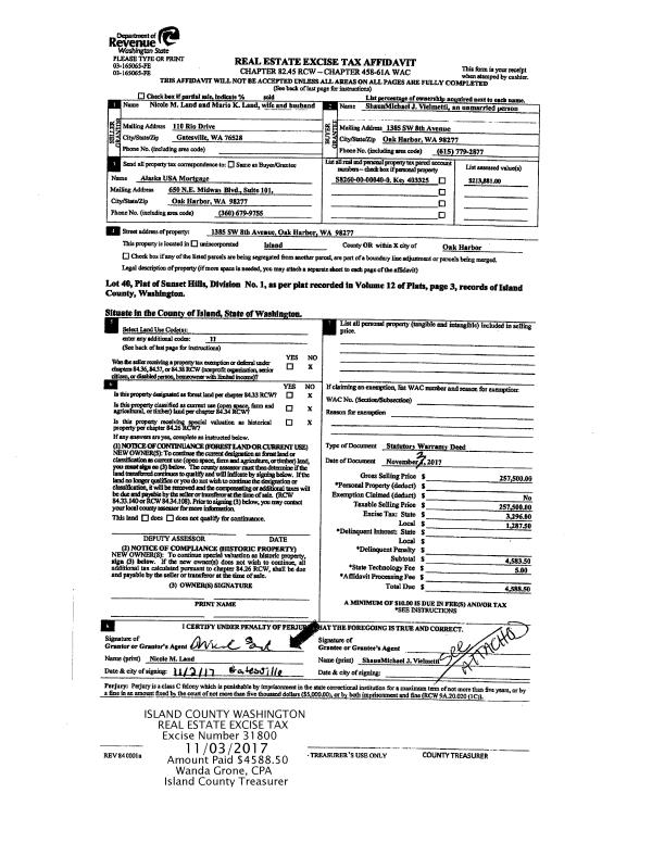 | 3 | 04/19/2013 | DEEDINLIEU | Deed In Lieu Of Foreclosure | SEATREE PROPERTIES LLC | PEOPLES BANK | | | $0.00 | 11091 | 4338352 |