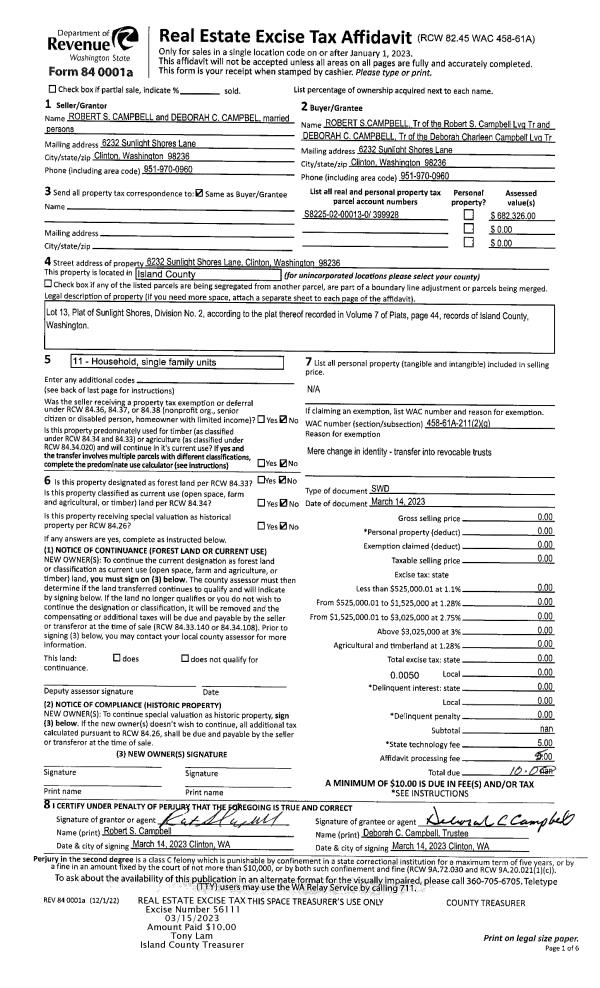 | Mailing Address: | 2459 OLYMPIC DR OAK HARBOR, WA 98277 | % Ownership: | 100.0000000000% |
