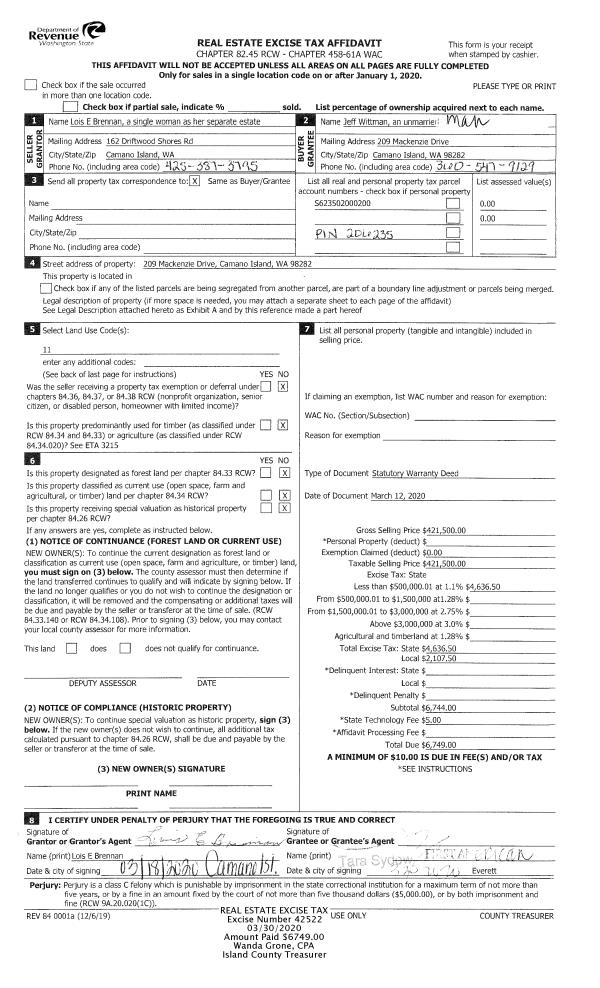 | 6 | 04/20/2015 | WD | Warranty Deed | TACKITT, JOHN G | JOHNSON, KIRK DAVID | | | $142,000.00 | 19326 | 4377338 |