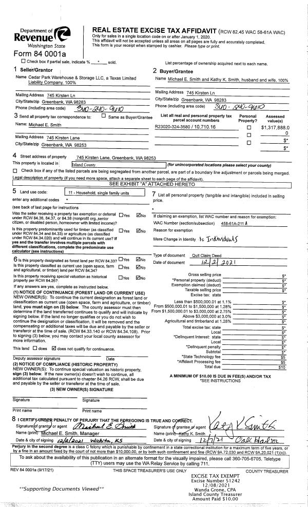 | Mailing Address: | ANGELA D. MUNIZ 1352 SEVEN EAGLES WAY GREENBANK, WA 98253 | % Ownership: | 100.0000000000% |