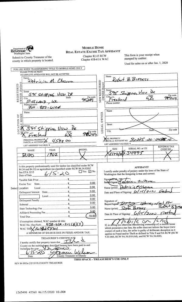 | Mailing Address: | DIANE L WATTS 25016 STATE ROUTE 525 GREENBANK, WA 98253-6252 | % Ownership: | 100.0000000000% |