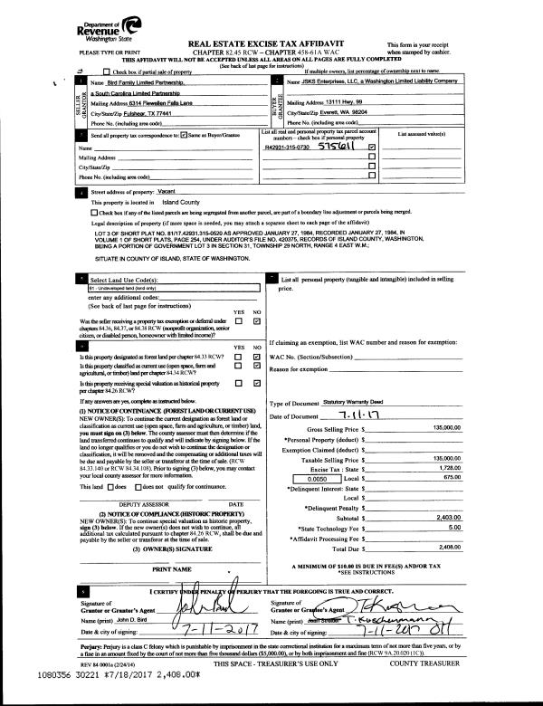 | Mailing Address: | 651 SE BAYSHORE DR, D101 OAK HARBOR, WA 98277 | % Ownership: | 100.0000000000% |