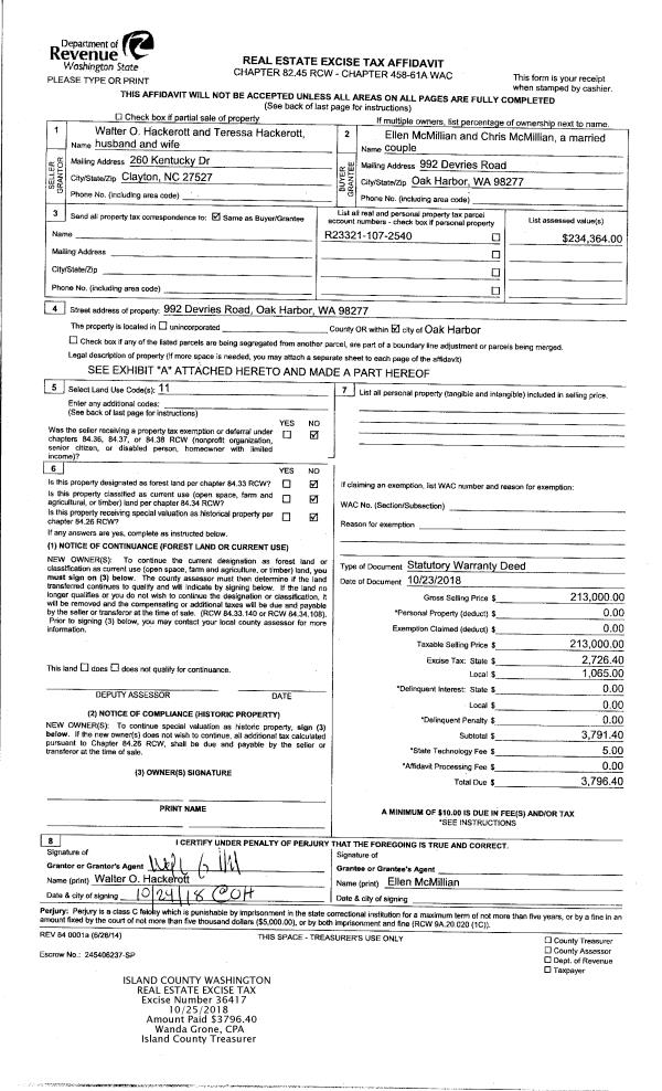 | Mailing Address: | 650 NW MIZZEN DR OAK HARBOR, WA 98277 | % Ownership: | 100.0000000000% |