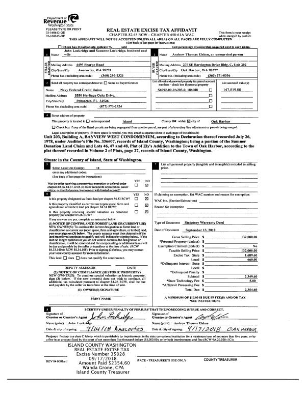 | Mailing Address: | FLORENCE E PAYEUR 2531 N OLYMPIC DR OAK HARBOR, WA 98277 | % Ownership: | 100.0000000000% |