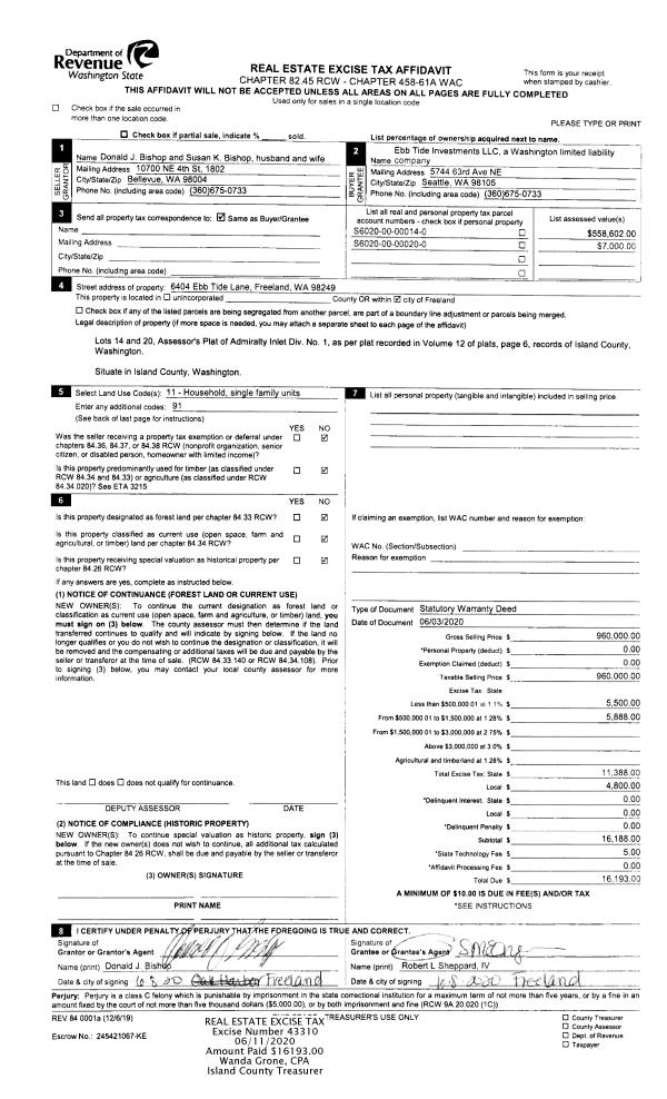 | Mailing Address: | PO BOX 73 GREENBANK, WA 98253 | % Ownership: | 100.0000000000% |