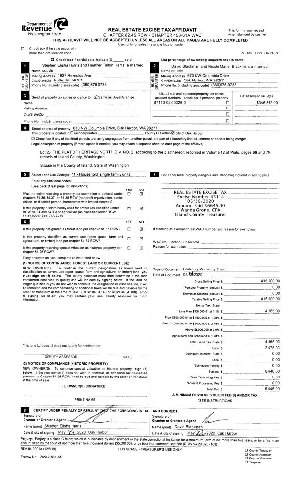 | Mailing Address: | 640 CHRISTENSON RD GREENBANK, WA 98253 | % Ownership: | 100.0000000000% |