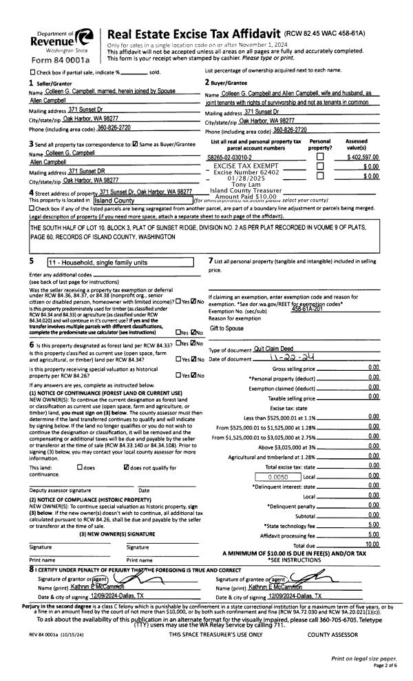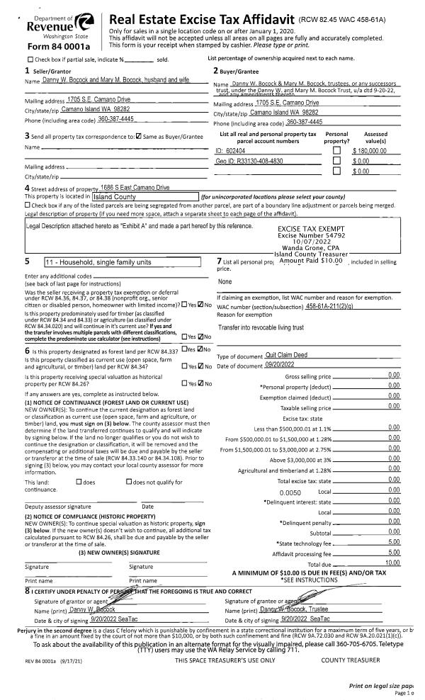| Mailing Address: | 1676 DOUGLAS ST OAK HARBOR, WA 98277 | % Ownership: | 100.0000000000% |