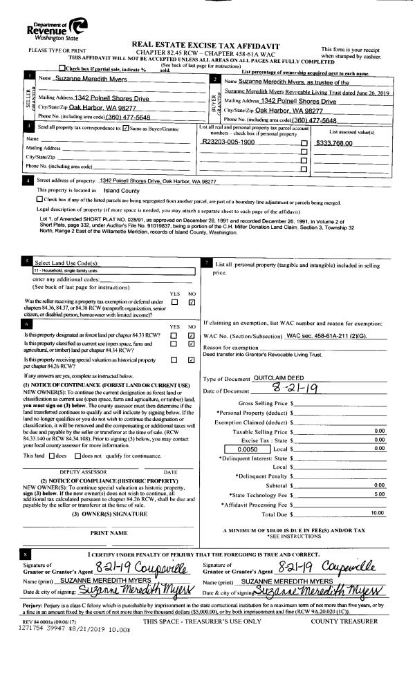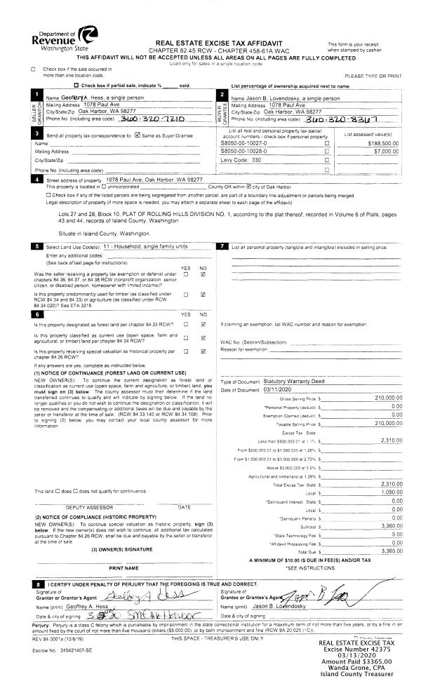 | 2 | 06/13/2019 | EZ | Easement | JOHNSEN, JANE E | TOWN OF COUPEVILLE | | | $1,700.00 | 41141 | 4475783 |