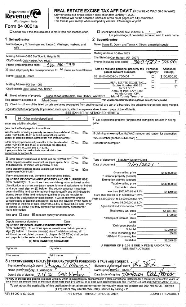 | Mailing Address: | 2181 WOODBINE RD LANGLEY, WA 98260 | % Ownership: | 100.0000000000% |