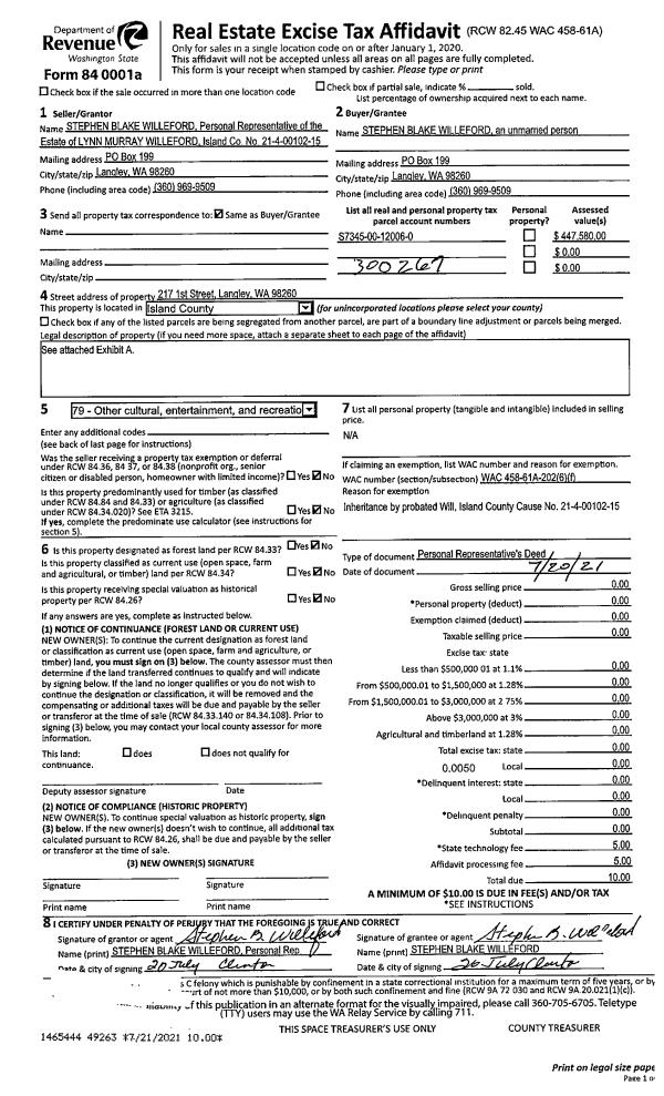 | Tax Area: | 712 - APPRAISER-S Whid Schl Dist, outside Langley, improved, greater than 1 acre | Land Use Code | 11 |