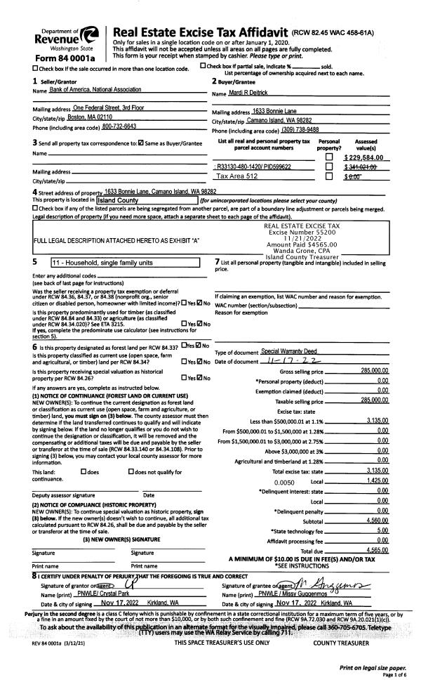 | Mailing Address: | KRISTINE A KELLY 3333 DAY RD GREENBANK, WA 98253 | % Ownership: | 100.0000000000% |