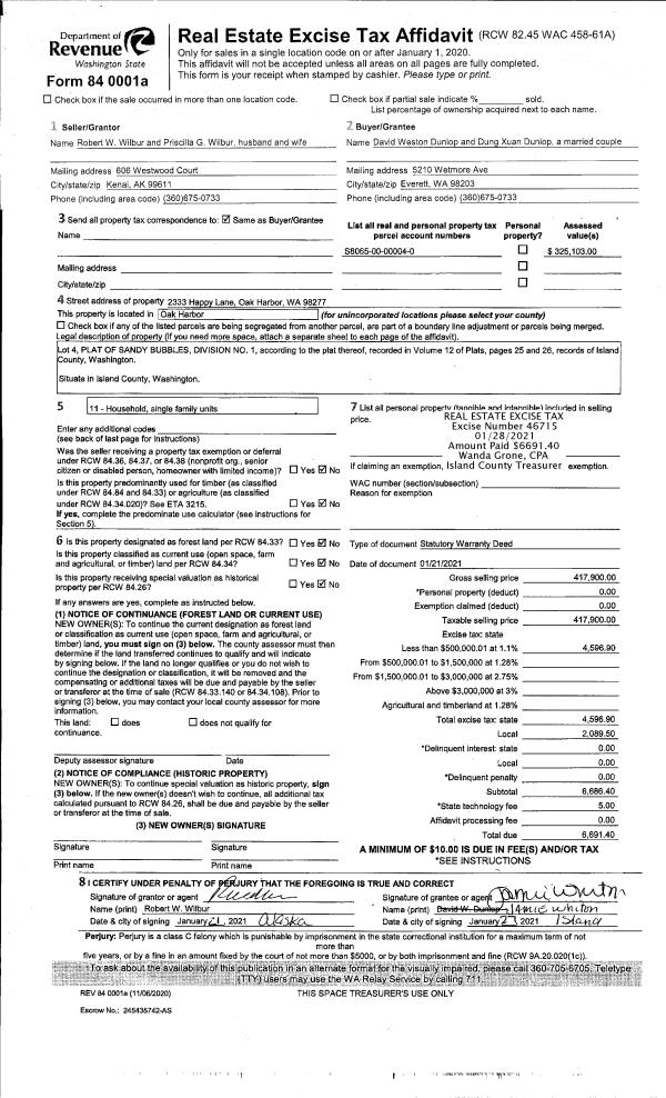 | Tax Area: | 719 - APPRAISER-S Whid Schl Dist, outside Langley, vacant & 50 acres or less | Land Use Code | 91 |