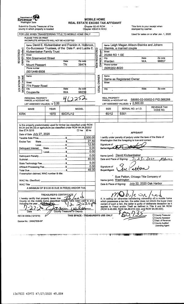 | Mailing Address: | 3402 GREEN RD OAK HARBOR, WA 98277 | % Ownership: | 100.0000000000% |