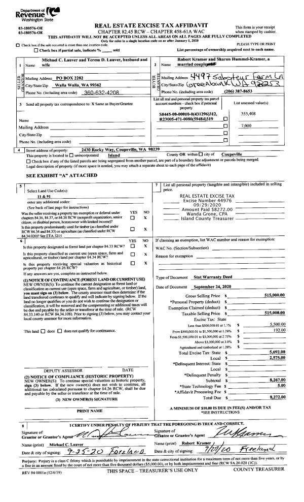 | 2 | 88 | DESIGNATED FOREST | 4.4000 | 191664.00 | 0.00 | 0.00 | 1.00 | $132,000 | $638 |