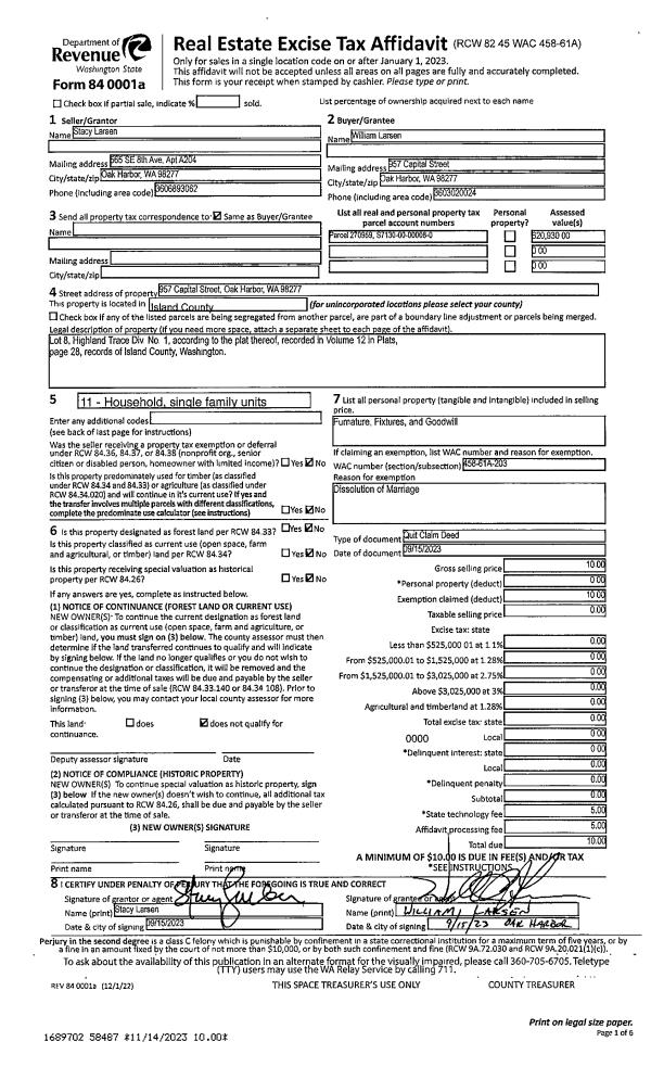 | 1 | 08/25/2023 | QCD | Quit Claim Deed | MARTIN TTEE, GLEN D. | MARTIN JTWROS, GLEN | | | $0.00 | 58172 | 4565432 |