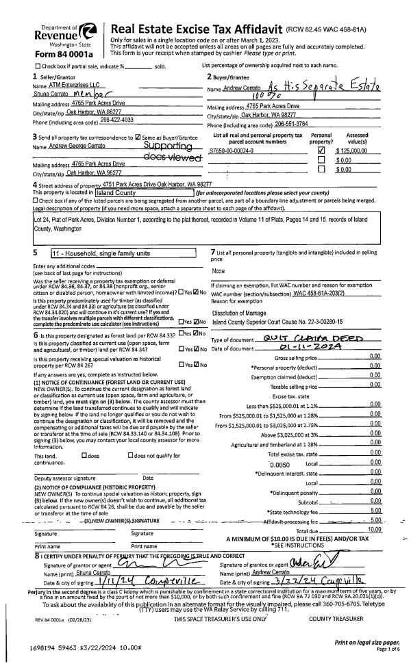 | Mailing Address: | SUSAN L WINSHIP 1669 SCENIC HEIGHTS RD OAK HARBOR, WA 98277-7630 | % Ownership: | 100.0000000000% |