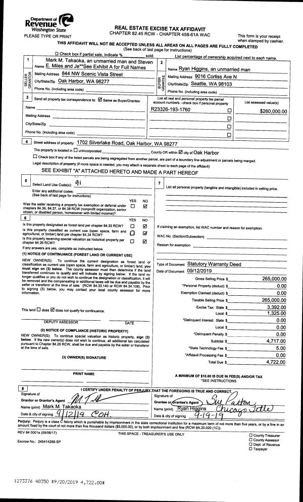 | Mailing Address: | KIMBERLY SCHAAF 651 SE BAYSHORE DR, UNIT C-202 OAK HARBOR, WA 98277 | % Ownership: | 100.0000000000% |