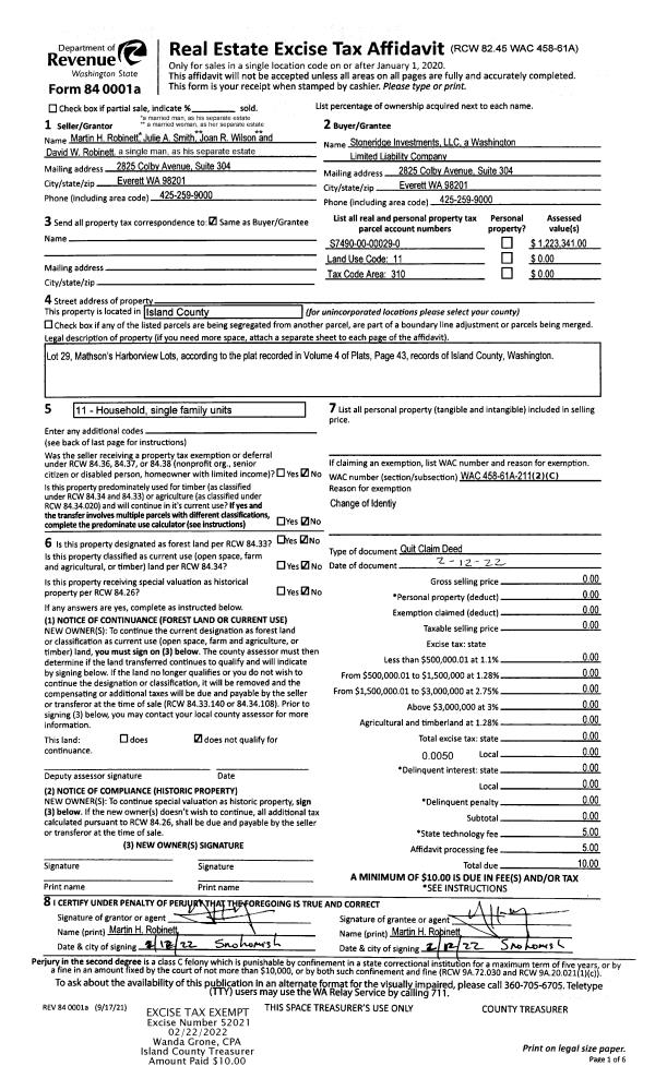 | Mailing Address: | 862 SANDS LN CAMANO ISLAND, WA 98282-7580 | % Ownership: | 100.0000000000% |