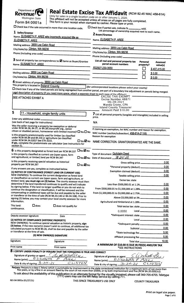 | Mailing Address: | 500 CREEKSIDE TERRACE APT 101 LANGLEY, WA 98260 | % Ownership: | 100.0000000000% |