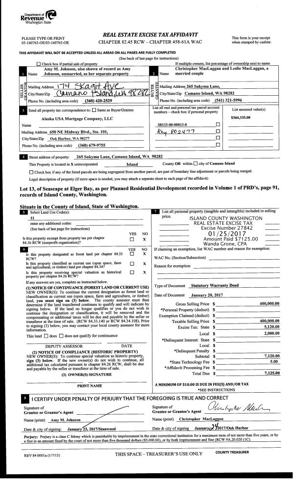 | 3 | 11/13/2016 | WD | Warranty Deed | BOHRER, RICHARD K | WESCH, WILLIAM G | | | $699,000.00 | 26899 | 4411398 |