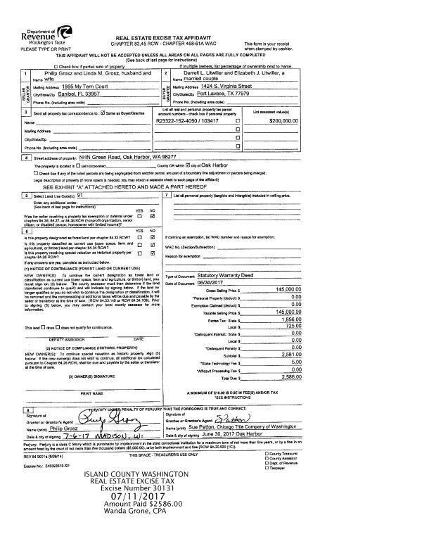 | Mailing Address: | PO BOX 580 COUPEVILLE, WA 98239 | % Ownership: | 100.0000000000% |
