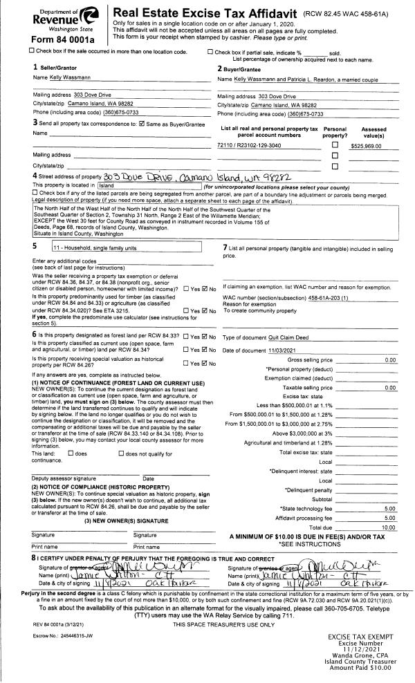 | Mailing Address: | 776 FORT CASEY RD COUPEVILLE, WA 98239 | % Ownership: | 100.0000000000% |