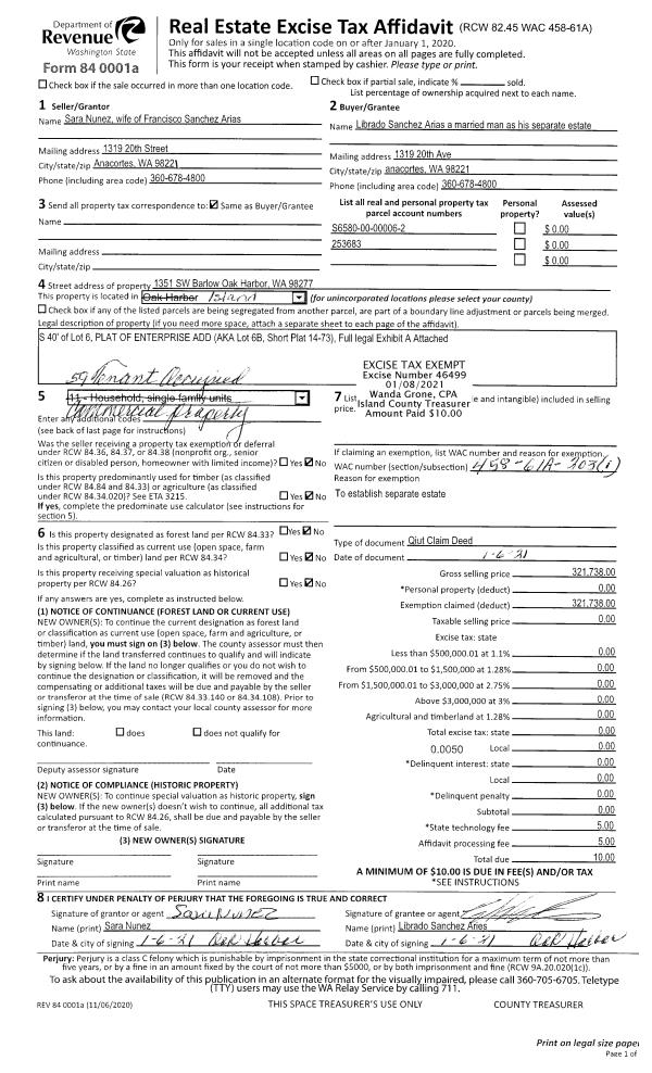 | Tax Area: | 712 - APPRAISER-S Whid Schl Dist, outside Langley, improved, greater than 1 acre | Land Use Code | 11 |