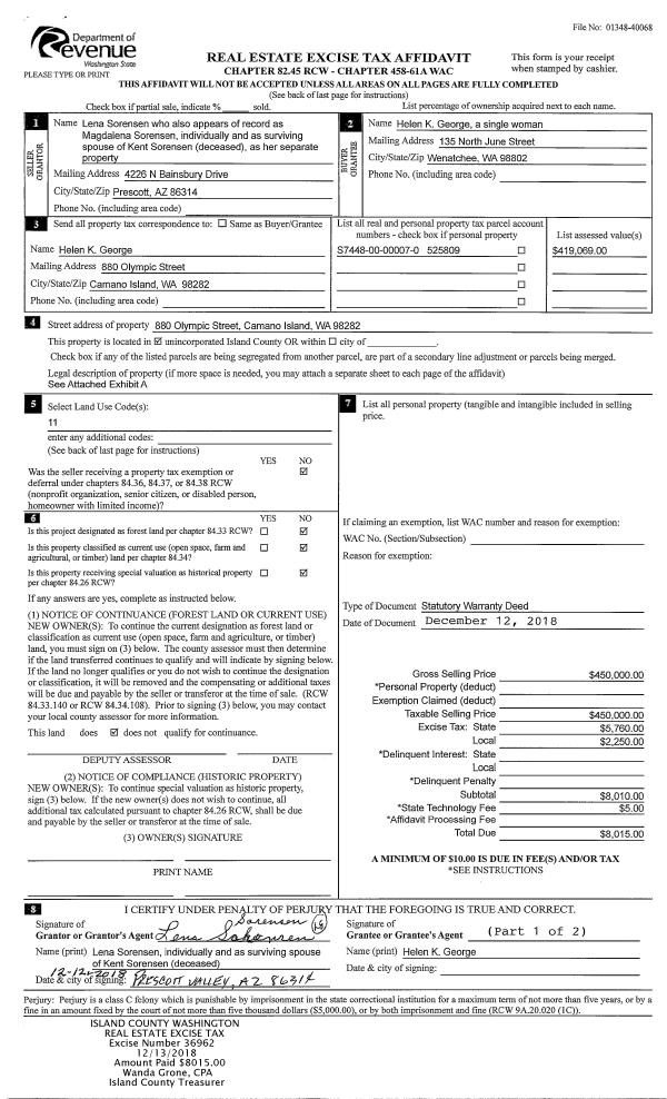| 1 | 12/10/2018 | WD | Warranty Deed | CAMBRIDGE COVE LTD PARTNERSHIP | SAG PRESERVATION PORTFOLIO | | | $0.00 | 36925 | 4456205 |