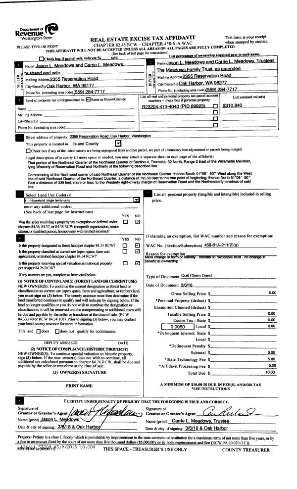 | 3 | 02/01/2011 | QCD | Quit Claim Deed | GRIMSTAD, RONALD E & CONNIE | CAMANO ISLAND PROPERTY LLC | | | $0.00 | 3582 | 4290408 |