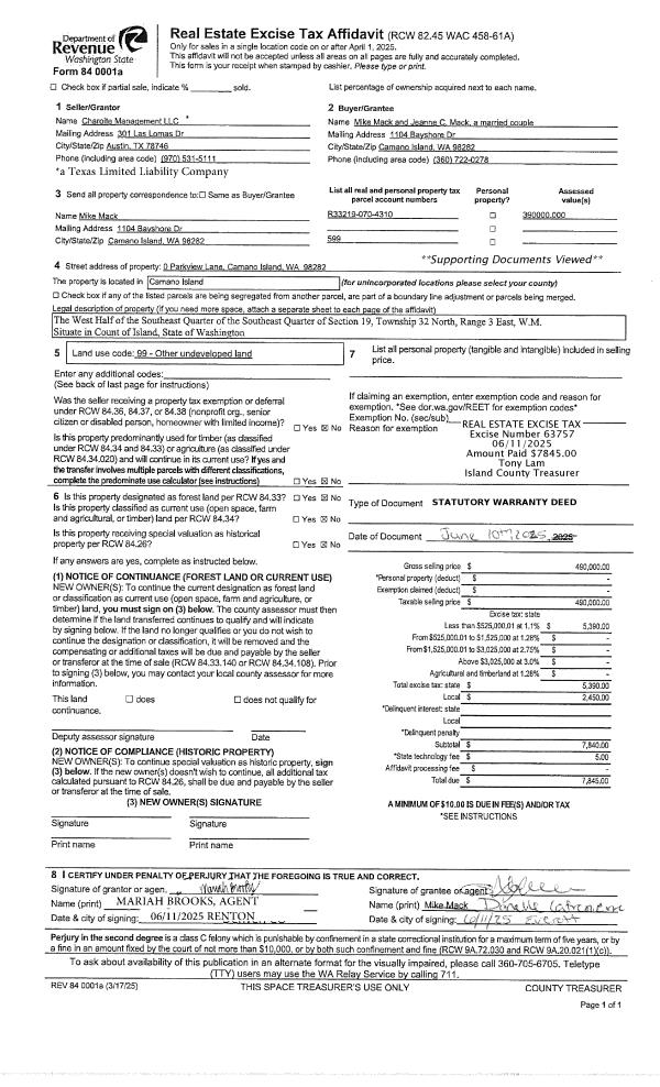 | Mailing Address: | PO BOX 927 COUPEVILLE, WA 98239 | % Ownership: | 100.0000000000% |