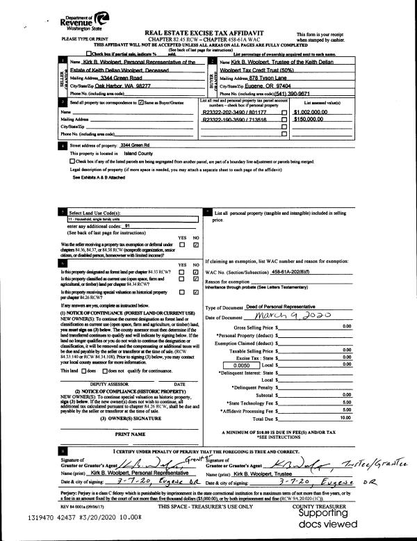 | Mailing Address: | ESTATE OF JAMES JOSEPH KEITH 12527 SE 42ND ST, #527 BELLEVUE, WA 98006 | % Ownership: | 100.0000000000% |