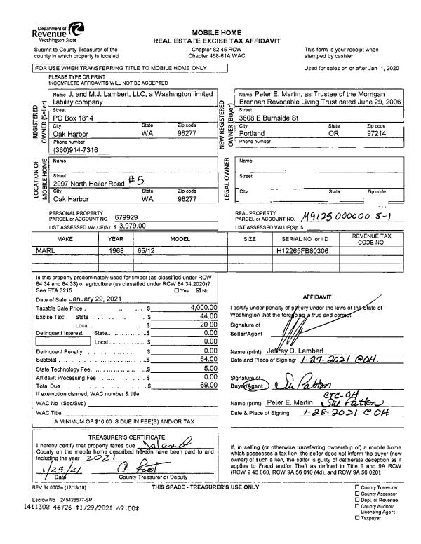 | Mailing Address: | 307 NOBLECLIFF PLACE LANGLEY, WA 98260 | % Ownership: | 100.0000000000% |