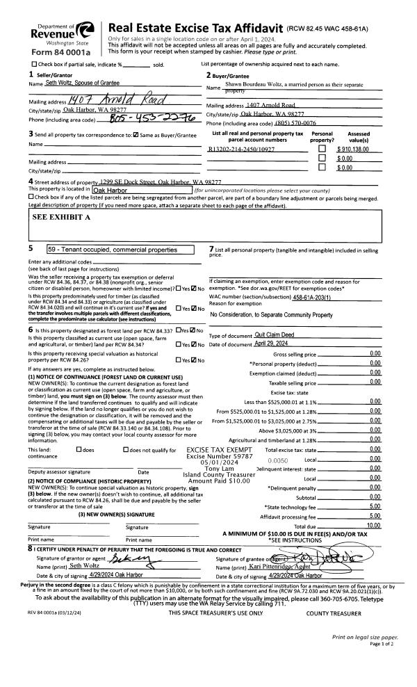 | Mailing Address: | PO BOX 1892 OAK HARBOR, WA 98277-1892 | % Ownership: | 100.0000000000% |