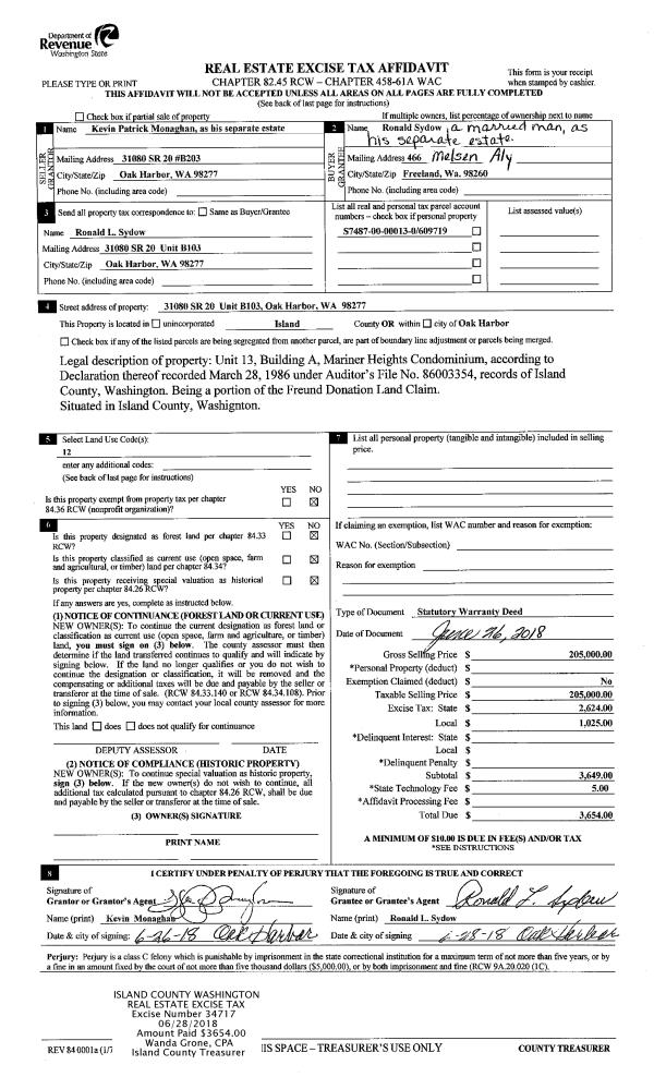 | Mailing Address: | PATRICK R HANEY 350 SW ROODZANT ST OAK HARBOR, WA 98277 | % Ownership: | 100.0000000000% |