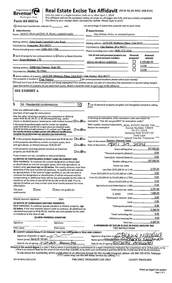 | Mailing Address: | MELISSA STEWART 1586 SW 2ND CT OAK HARBOR, WA 98277 | % Ownership: | 100.0000000000% |