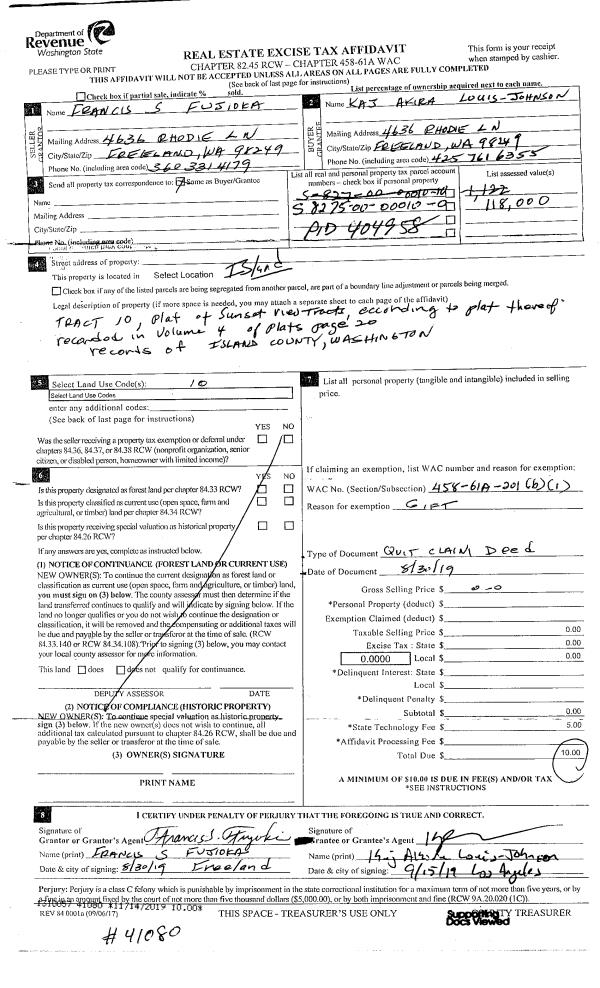 | Mailing Address: | 4190 TIMBERLINE RD CLINTON, WA 98236-8436 | % Ownership: | 100.0000000000% |