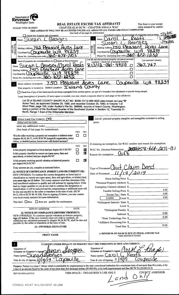 | Mailing Address: | JENNIFER SIEGEL PO BOX 410 GREENBANK, WA 98253 | % Ownership: | 100.0000000000% |
