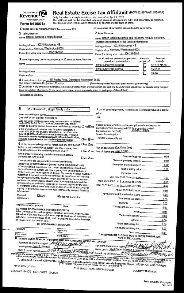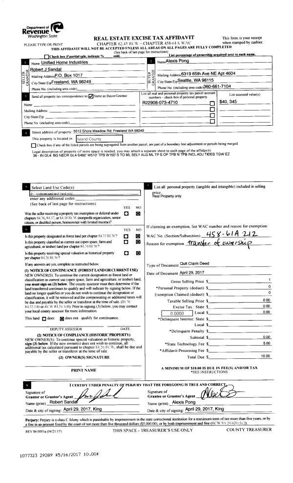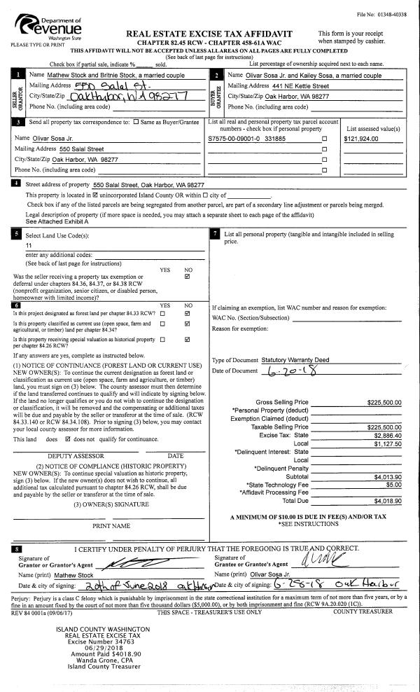 | 2 | 08/29/2018 | WD | Warranty Deed | MCELROY, JAMES P | WHIDBEY LAND LLC | | | $395,000.00 | 35797 | 4451283 |